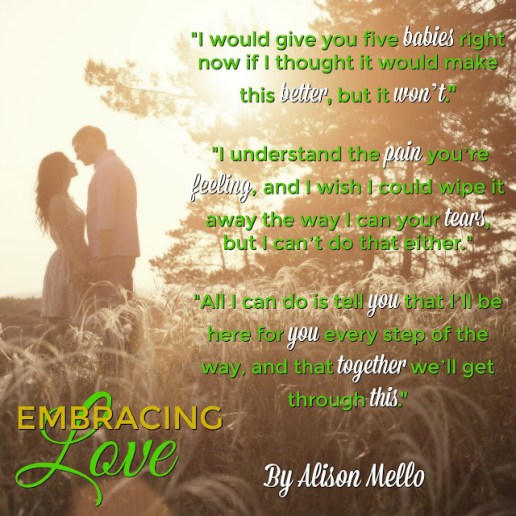 Finding Love is Alison’s debut novel. I really enjoyed the story. I admit that at first, I didn’t feel like I was fully “into it.” I was wrong. (Yes, I mentally said that in my Ron White voice. LOL) I had to put the book down so I could adult for awhile & realized I couldn’t stop thinking about the characters. I wanted to get back to it so I could see what happened next. I’d become fully invested in Seth, Abbey, & Brian. Maybe it’s just me, but I think sometimes the best stories are the ones that sneak up on you. They burrow inside your bookworm heart & stay with you until you’ve seen the story through.